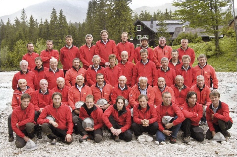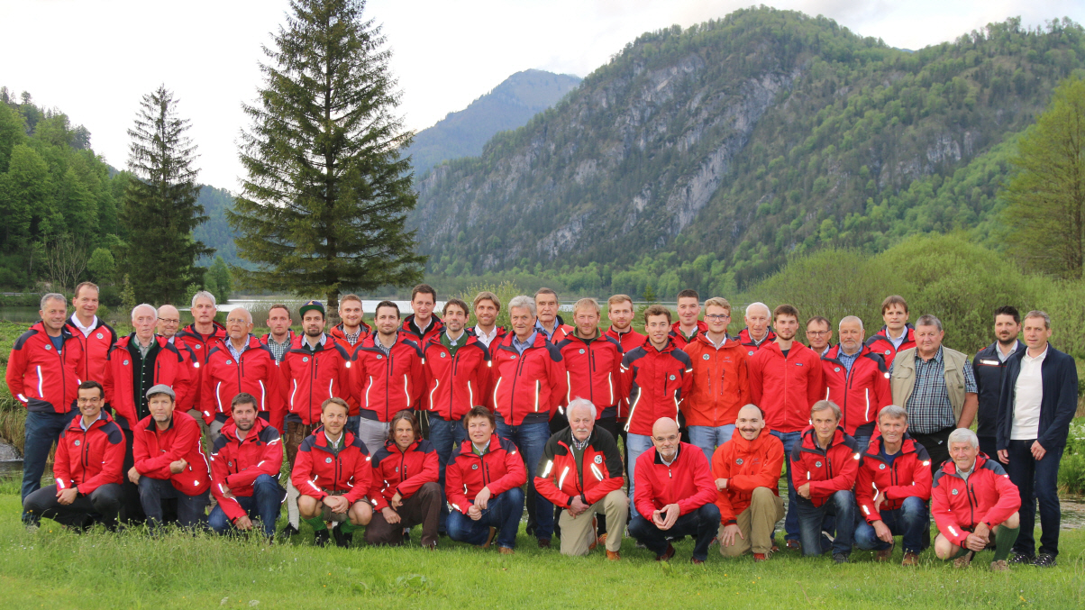 Mannschaft 2016 Bergrettung Ortsstelle Grünau im Almtal - 2016 - mit Pfarrer Pater Christoph Eisl und Bürgermeister Alois Weidinger selbst Bergretter